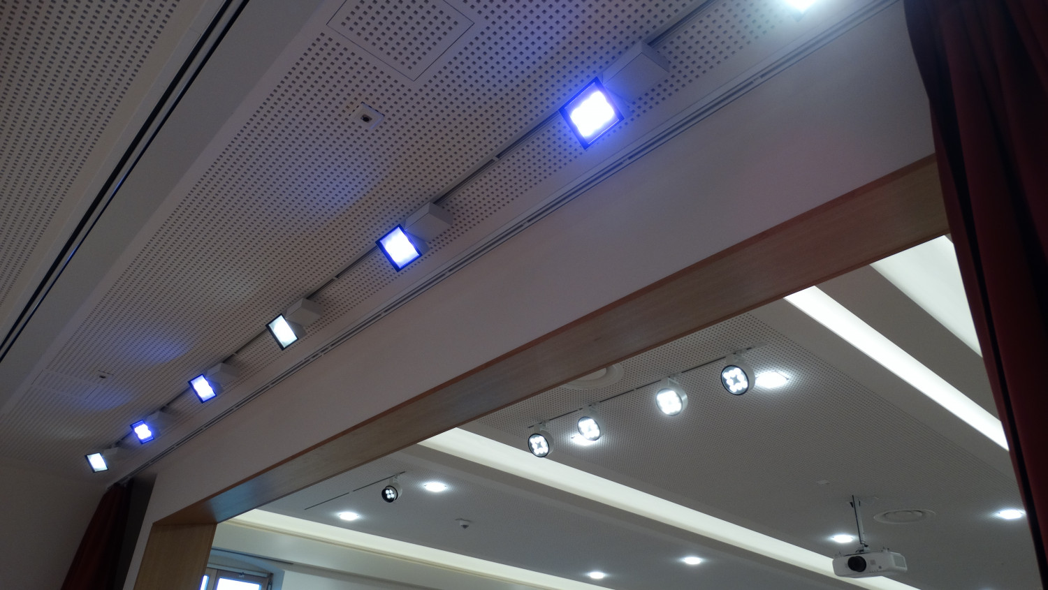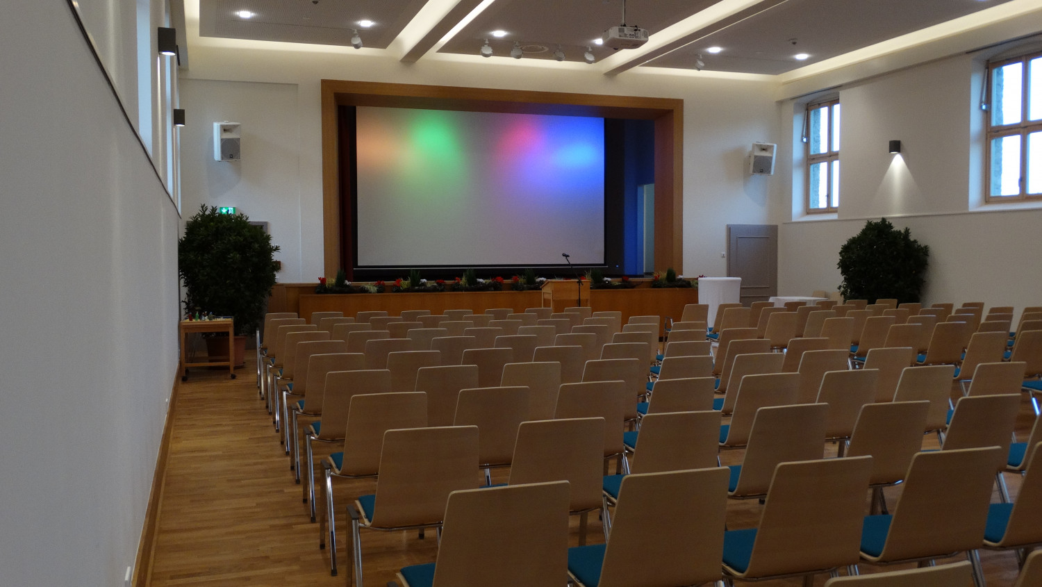 Umgesetzt wurde von uns ein Lichtkonzept, das alle Möglichkeiten bietet, um eine optimale Ausleuchtung zu unterschiedlichen Anlässen und bei verschiedenen Veranstaltungen zu gewährleisten. Die Beleuchtung unterstützt damit die Funktion des Festsaales, ein multifunktional nutzbarer und gleichzeitig repräsentativer Versammlungsraum zu sein.