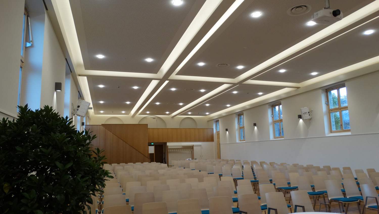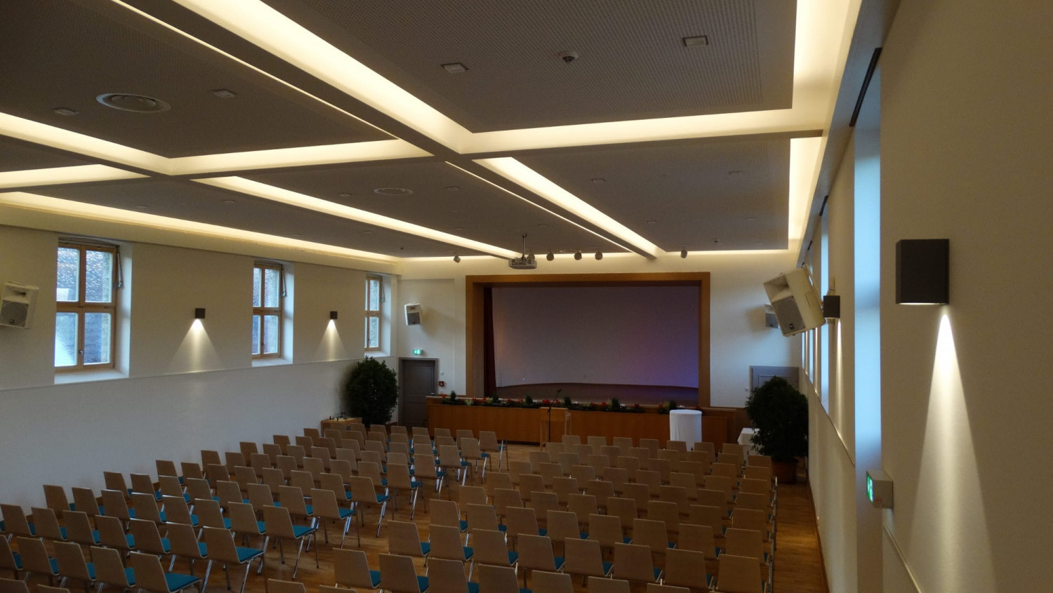 Ein zentraler Versammlungsraum des Klosters St. Ludwig ist der Festsaal, der sowohl bau- als auch lichttechnisch neu zu gestalten war.